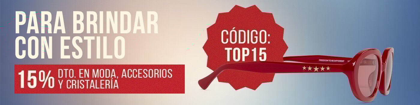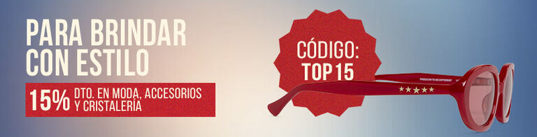 Disfruta de un 15% de descuento en Moda, Accesorios y Cristalería utilizando el CÓDIGO TOP15